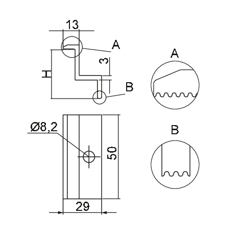 • pozdĺžne drážky v mieste dotyku držiaka s panelom zvyšujú stabilitu upevnenia