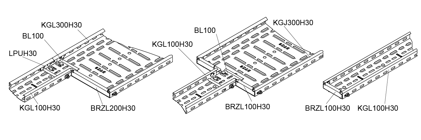 - pre obojstrannú redukciu možno použiť redukcie rôznych, alebo rovnakých šírok, napr.: pre redukciu o 200mm je možné použiť BRZL50H30 a BRZL150H30 alebo 2x BRZL100H30