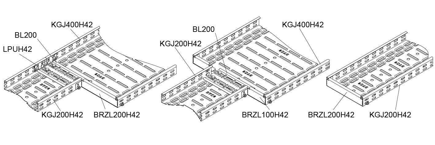 - pre obojstrannú redukciu možno použiť redukcie rôznych, alebo rovnakých šírok, napr.: pre redukciu o 200mm je možné použiť BRZL50H42 a BRZL150H42 alebo 2x BRZL100H42
