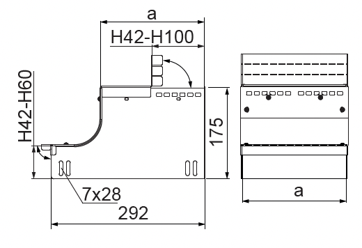 – rozvetvenie káblovej trasy nahor alebo nadol v rozsahu výšok H42-H100