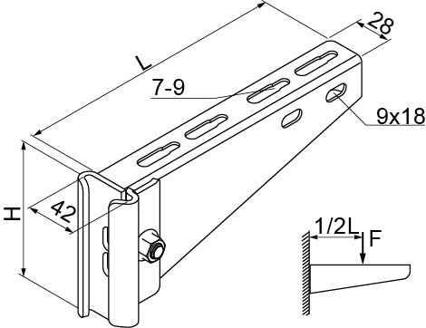Upevňovanie káblových žľabov, rebríkov, rúr a iných prvkov o veľkom zaťažení ku I-nosníkom.