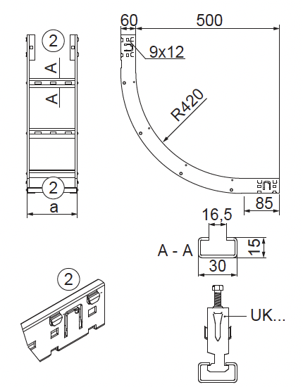 – priečky prispôsobené pre montáž strmeňových príchytiek UK/UKO... a UKP...