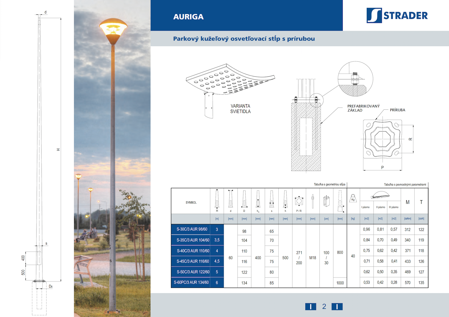 S-30÷50C/3 AUR Parkový stĺp kužeľový s prírubou