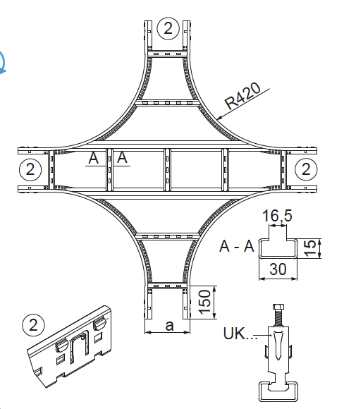 – priečky prispôsobené pre montáž strmeňových príchytiek UK/UKO... a UKP...