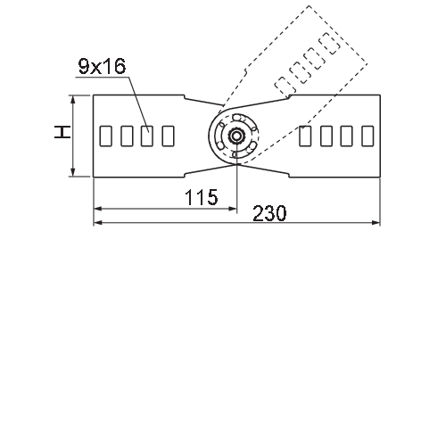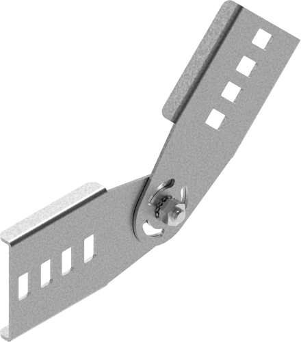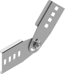 Spájanie káblových rebríkov vedených pod rôznym uhlom. Nastavenie uhla v plnom rozsahu s blokádou.