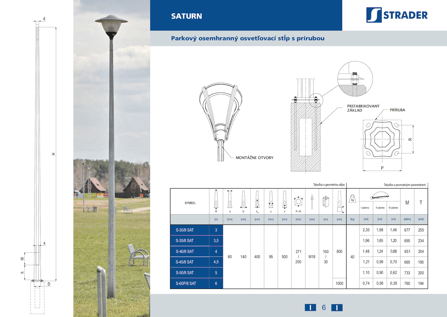 S-30÷60P/8 SAT Parkový osemhranný osvetľovací stĺp s prírubou