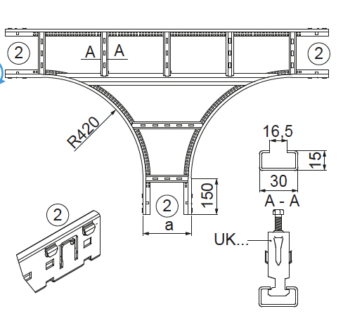 – priečky prispôsobené pre montáž strmeňových príchytiek UK/UKO... a UKP...