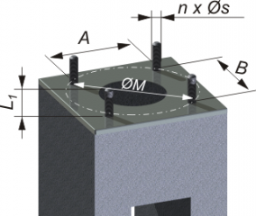 Symbol Kat. číslo Hmotnost [kg] h [m] n x Øs/ØM Mg [kNm] a [m] L1 [mm] Název