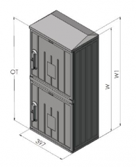 Prázdna polyesterová skriňa bez zámku. Hĺbka skribe 250mm. V súvisiacich produktoch je štandardne navolený trojbodový zámok HS02 s tiahlami ktorý je potrebné uviesť v objednávke , okrem toho si môžete zvoliť vložku štvorcovú dieru a kľúč. Ďalšiu výbavu skrine, prípadne iný typ vložiek si môžete vybrať v príslušenstve. Vnútri skrine na jej zadnej stene a bokoch sú izolátory slúžiace na upevnenie zariadenia skrine.