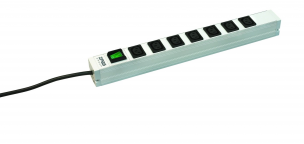 Výbava: 7 zásuviek IEC C13, vypínač s kontrolkou, 2 plechové odnímateľné držiaky pre montáž panelu na 19" vertikálne lišty (možnosť upevnenia držiakov k panelu v 4 rôznych polohách)