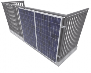 Kompletný nosný systém, ktorý umožňuje montáž fotovoltaických panelov na zábradlia.