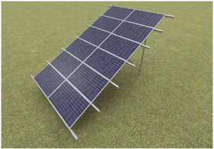 Kompletný nosný systém, ktorý umožňuje montáž šiestich radov panelov v horizontálnom usporiadaní.
