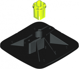 - Podstavec je vyrobený z gumeného proti-šmykového materiálu, ktorý ideálne rozkladá zaťaženia (pre strechy pokryté PVC fóliou je potrebné vložiť medzi podstavec a strešnú fóliu separačnú vrstvu, ktorá bráni migrácií zmäkčovadiel do fólie, čo môže spôsobiť degradáciu PVC fólie).