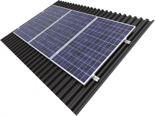 Kompletný nosný systém, ktorý umožňuje montáž ľubovoľného počtu fotovoltaických panelov vo vertikálnom usporiadaní na šikmú strechu pokrytú trapézovým plechom.