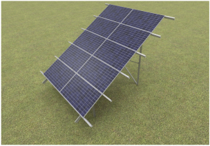 Kompletný nosný systém, ktorý umožňuje montáž piatich radov panelov v horizontálnom usporiadaní.